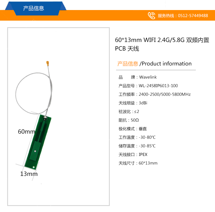 天線尺寸:60*13MM