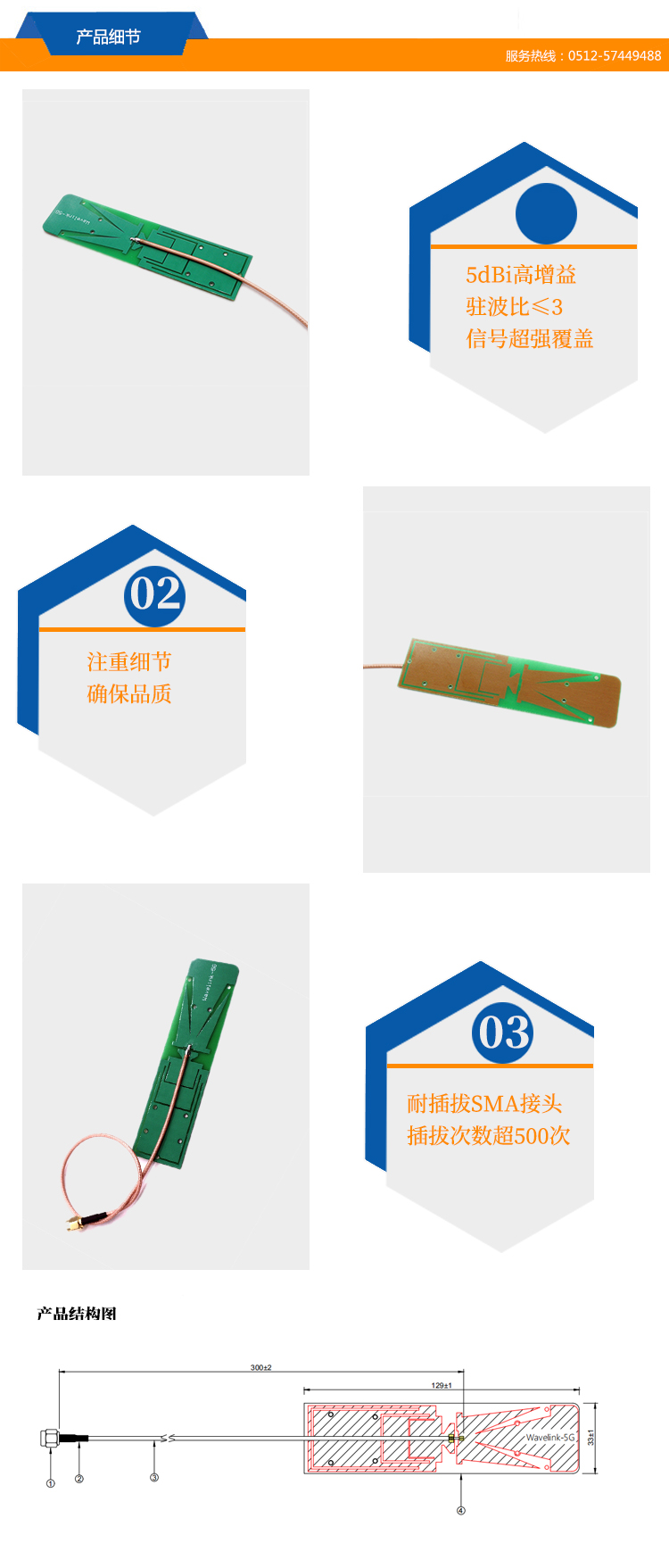 產(chǎn)品增益:5dBi