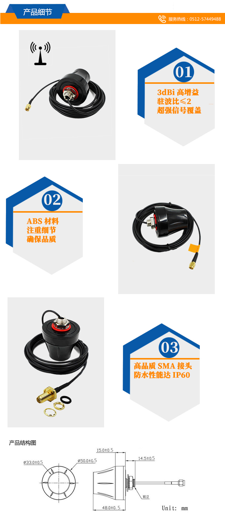 天線尺寸:48*50mm